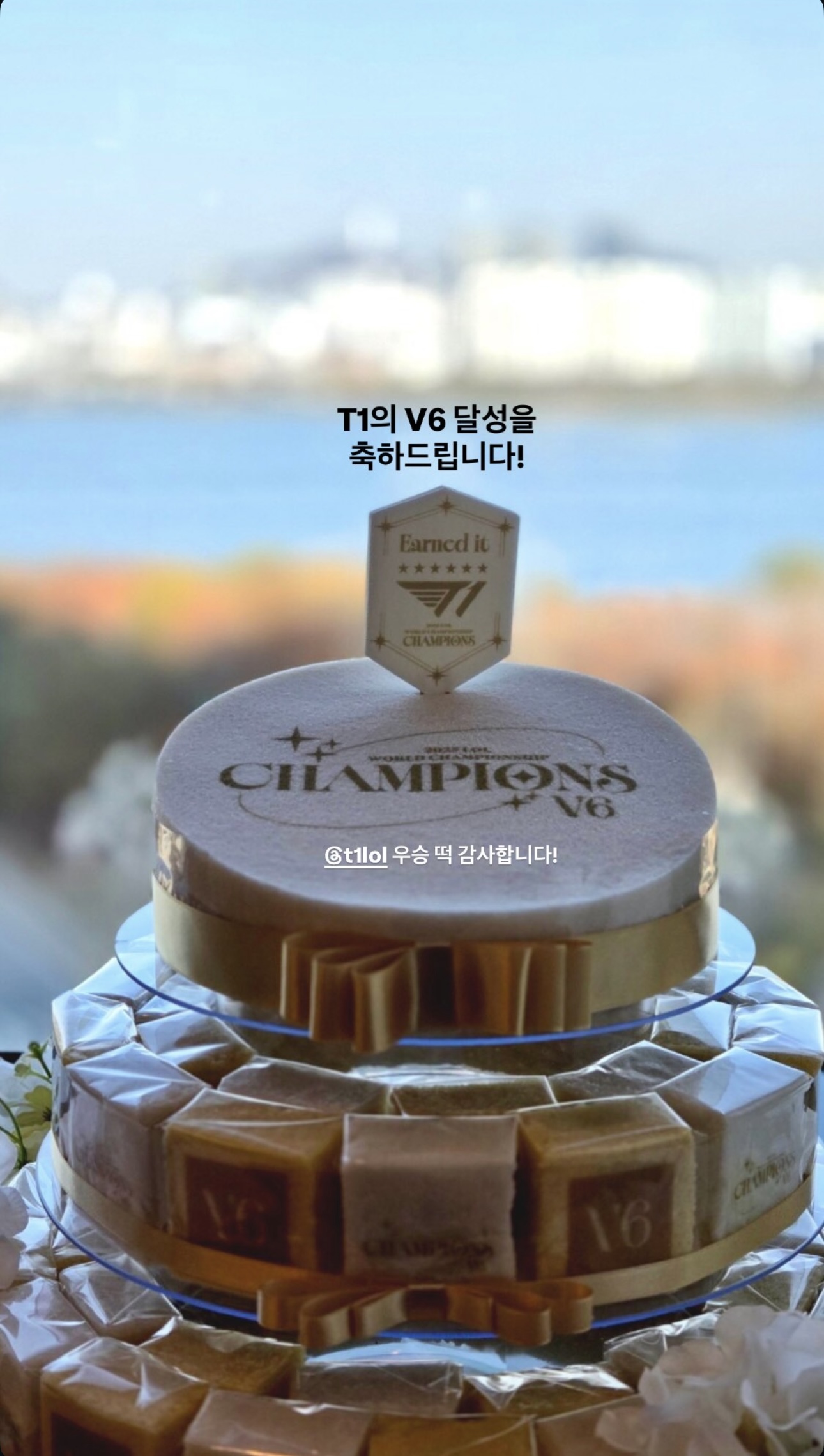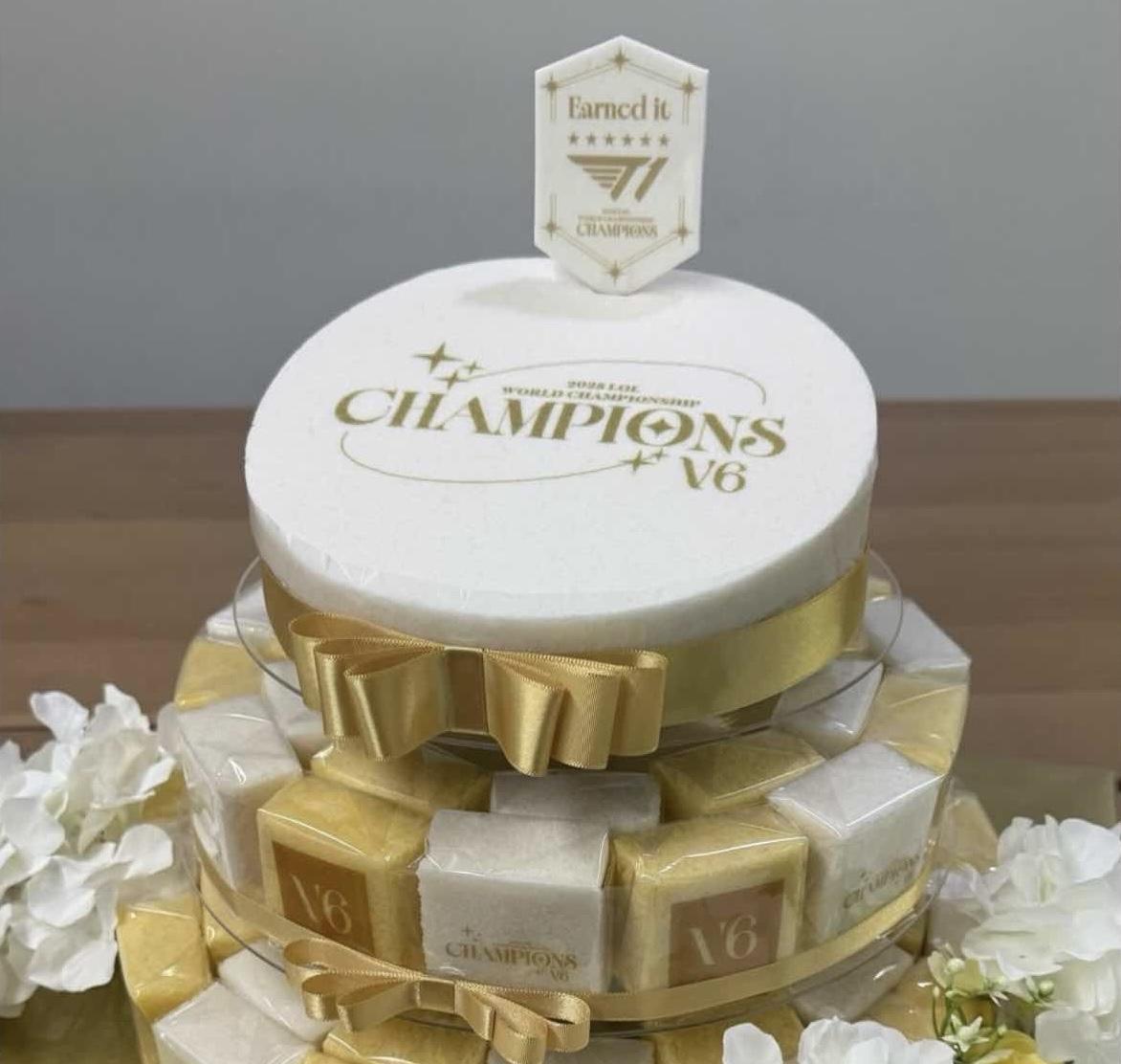 HLE官方分享T1夺冠年糕照片:祝贺达成第六冠,感谢冠军年糕