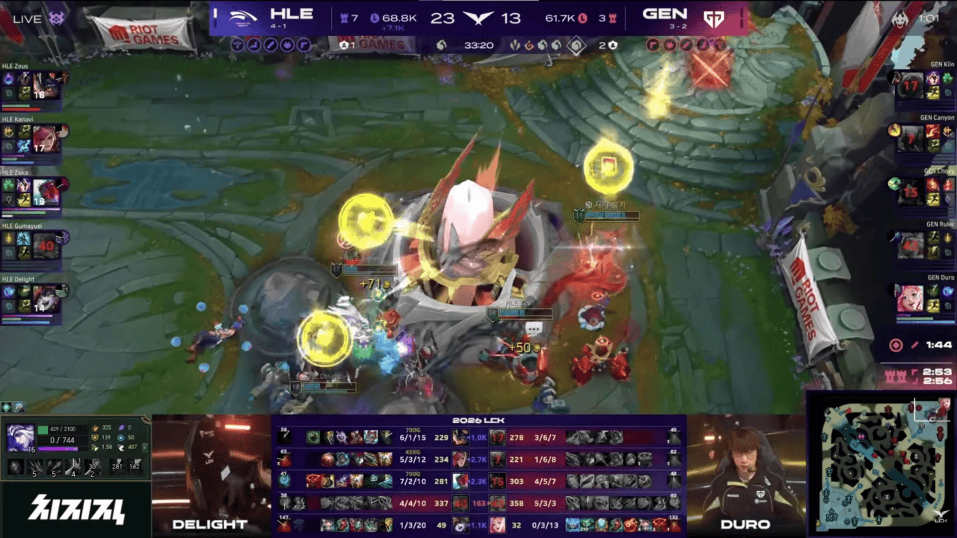 HLE 1-0 GEN:Zeka阿萝拉强势游龙超神,HLE首局碾压GEN