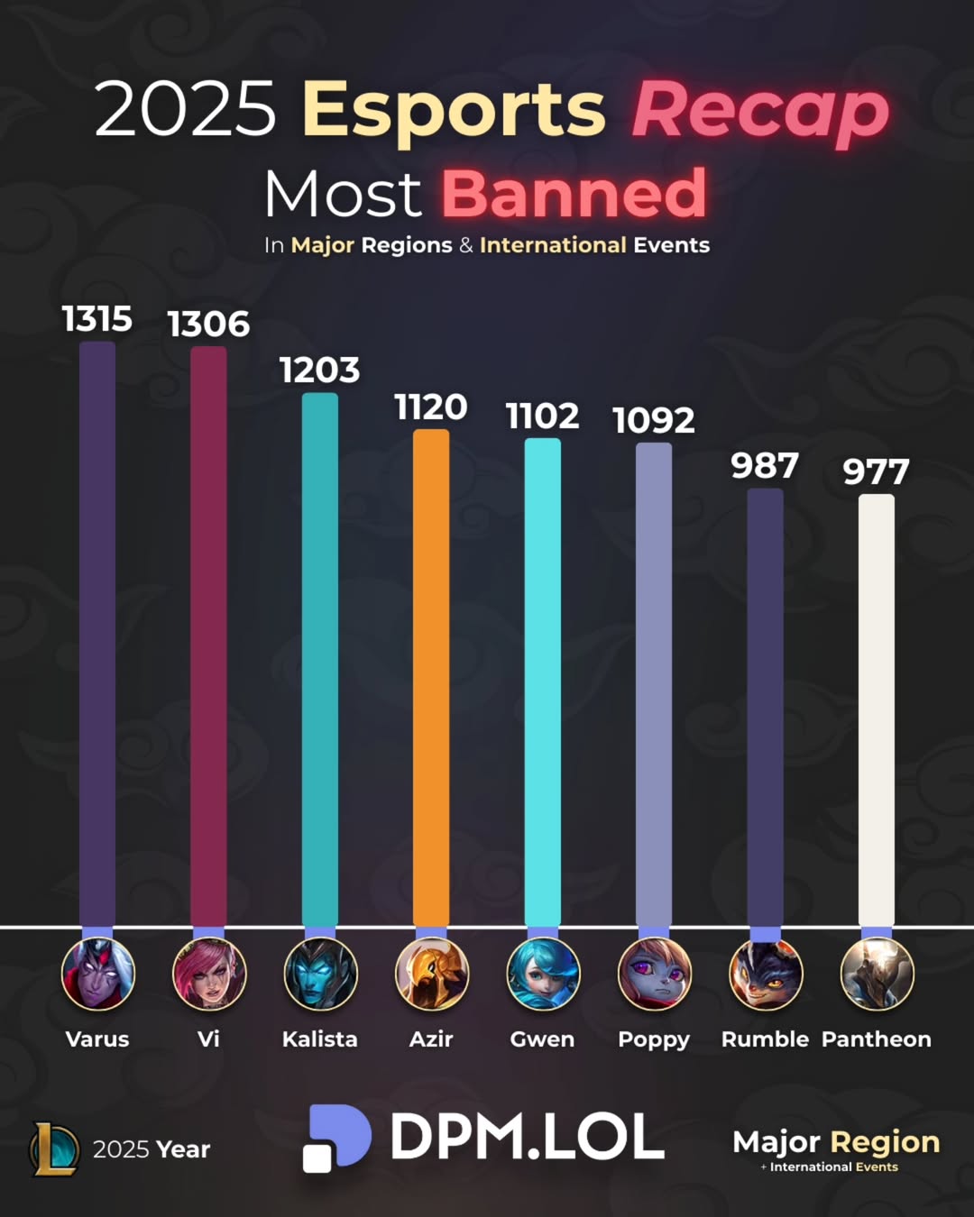外媒统计2025英雄禁用次数:韦鲁斯、蔚、滑板鞋前三