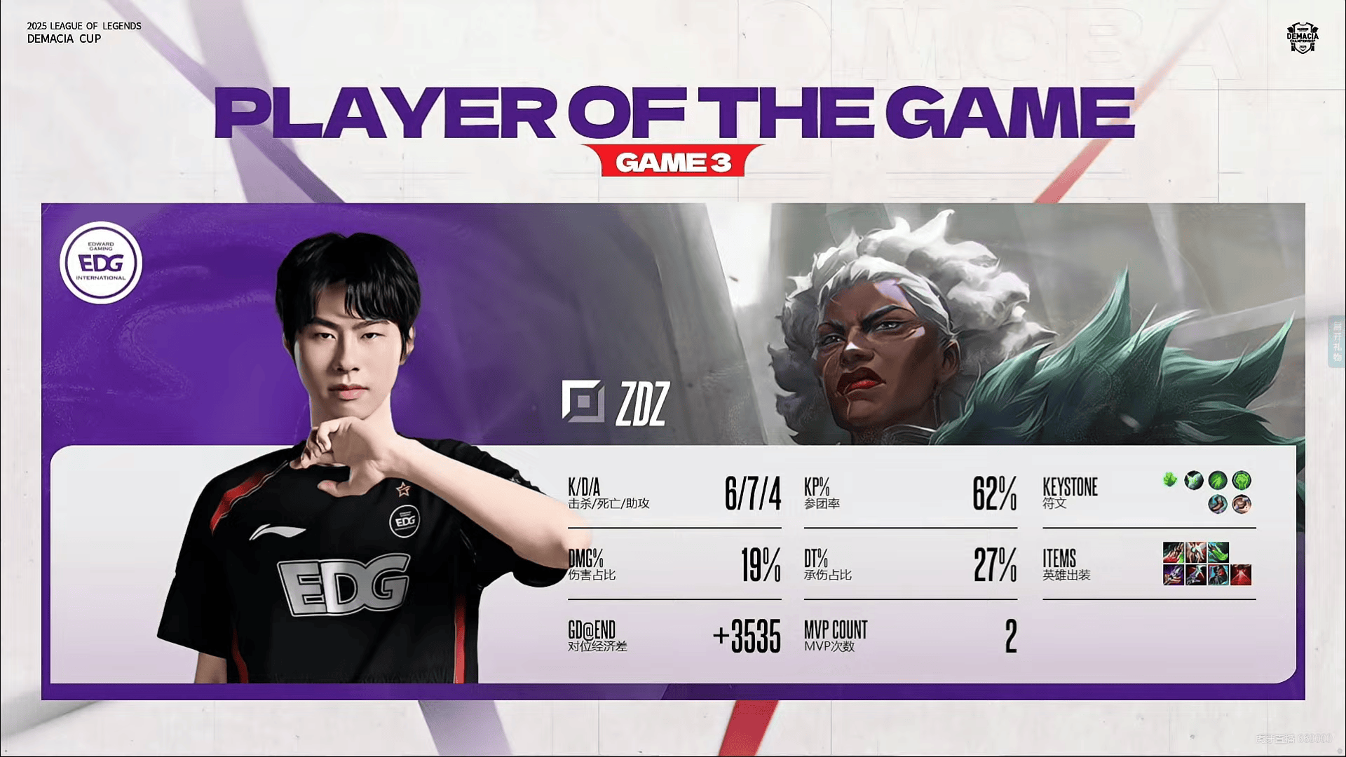 Zdz安蓓萨砍下6/7/4的战绩,拿下EDG对阵NIP决胜局MVP