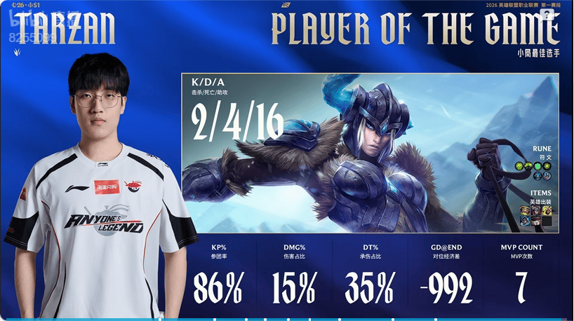 扛起大旗!Creme拿到TES对阵JDG比赛的全场MVP