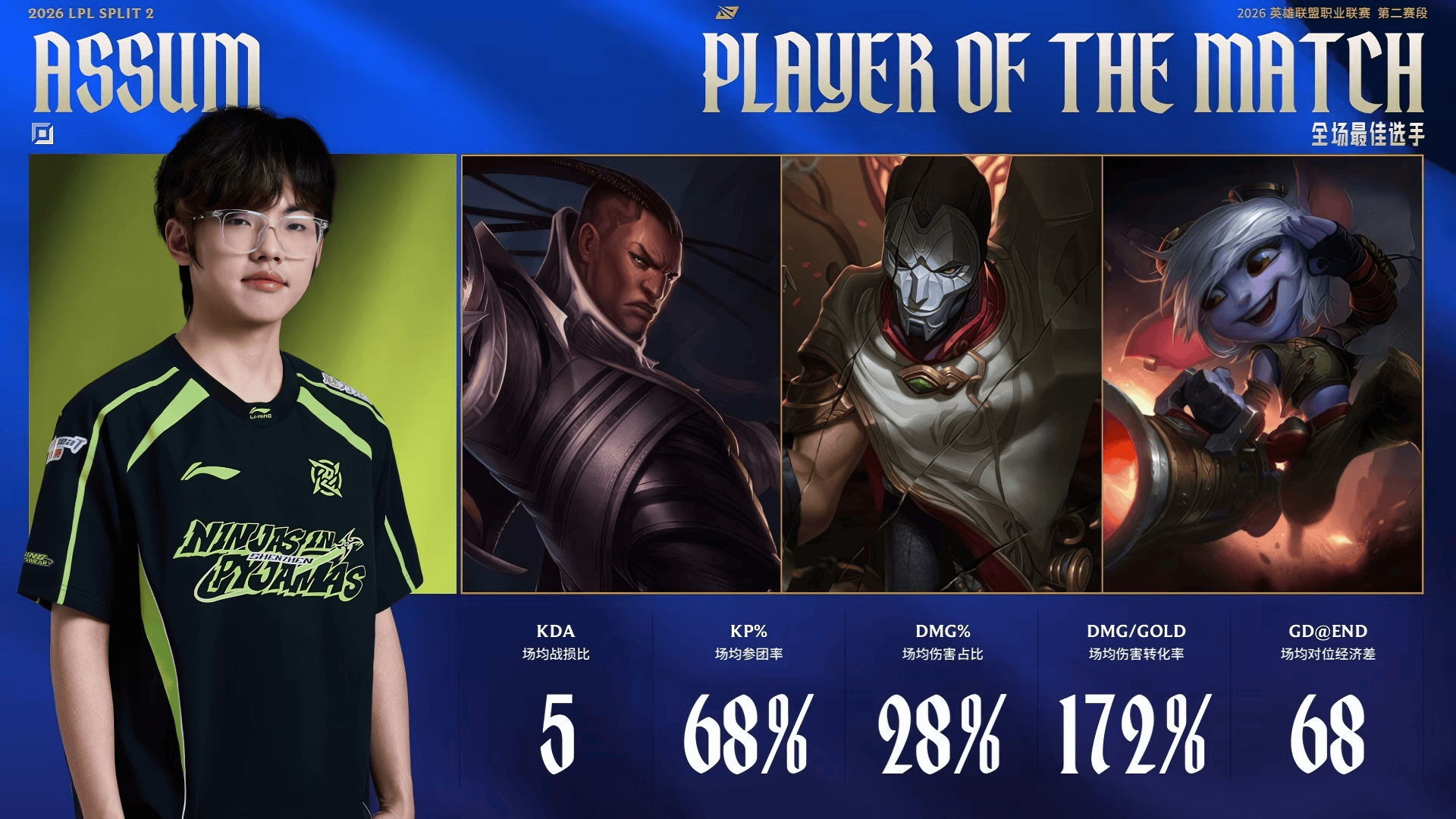 Assum三局合砍15/7/17的战绩,拿下NIP对阵WBG系列赛MVP