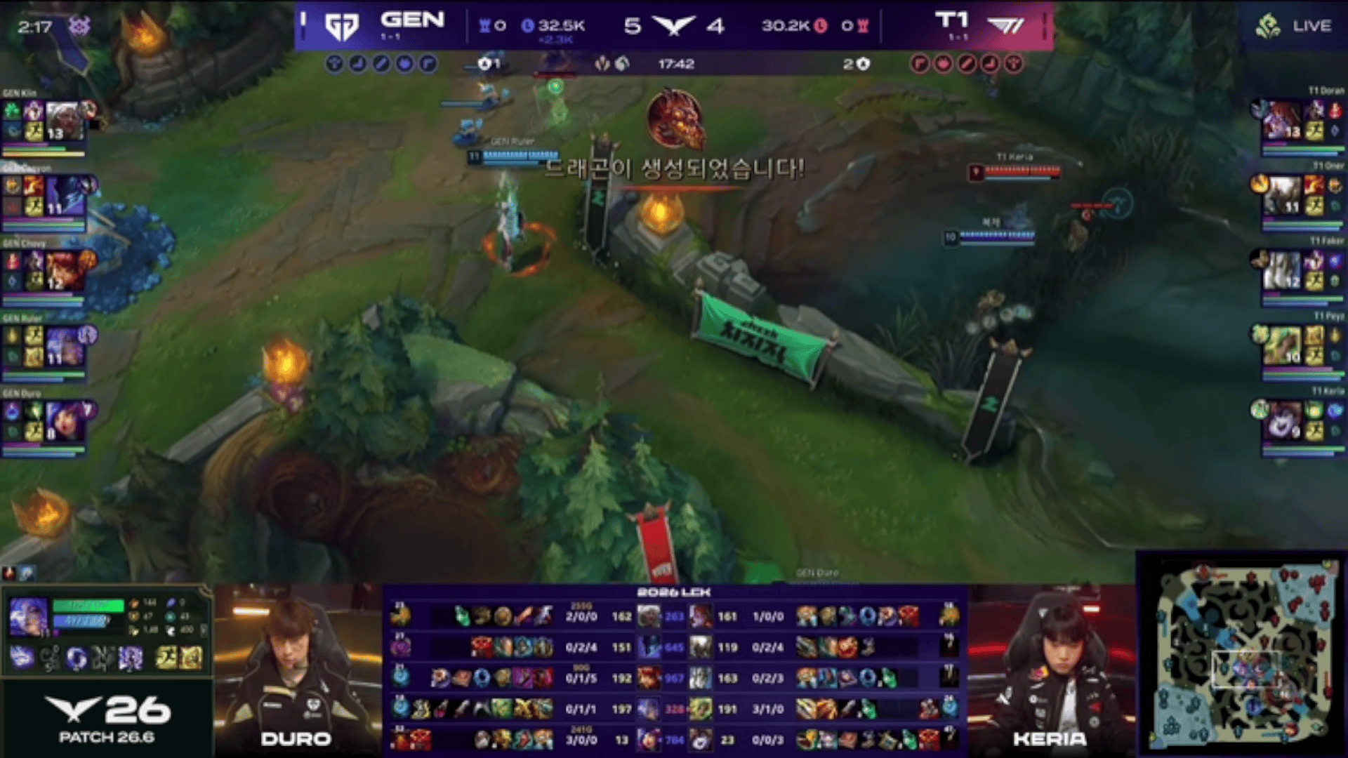 LCK:Doran杰斯落单被抓,GEN趁势一波推平T1基地