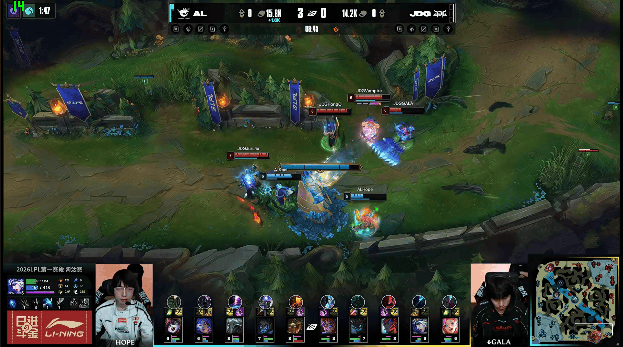 JDG四人越塔出现失误,仅击杀Hope芸阿娜一人