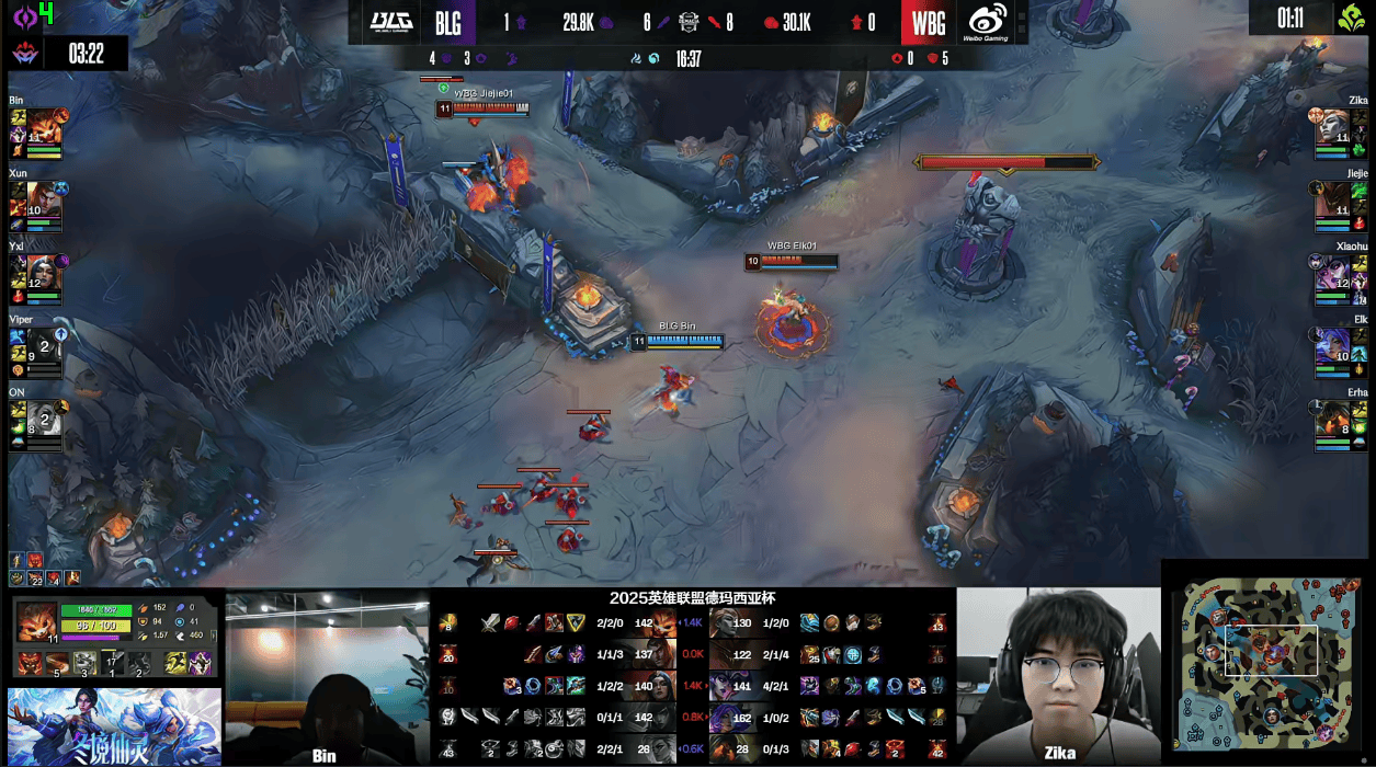 Zika亚恒遭到Bin纳尔极限反杀,BLG拿下小龙随后ON被击杀