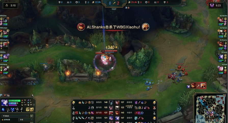 Jiejie赵信依旧发力,WBG找到节奏接连击杀BLG下野