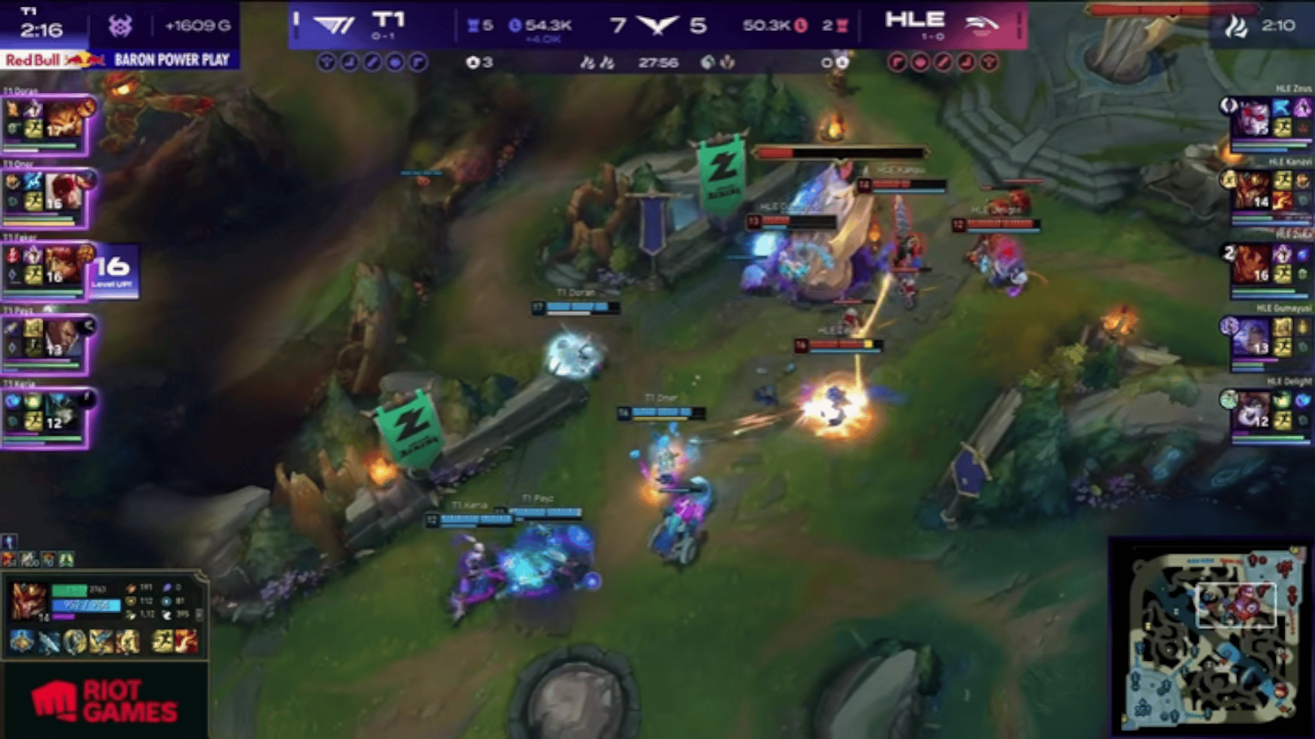 LCK:Zeus薇恩连收两个终结,HLE中路反击0换3打退T1大龙推进