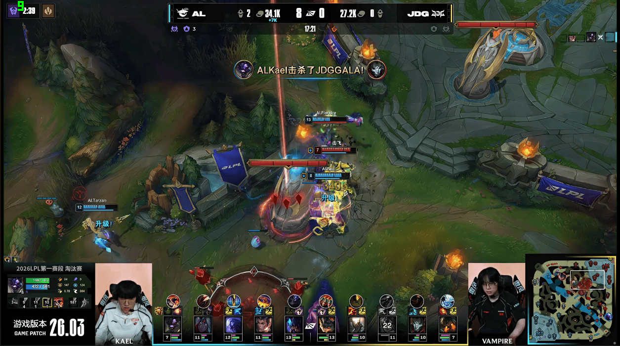 JDG占住地形率先拿下大龙,AL众人集火Vampire