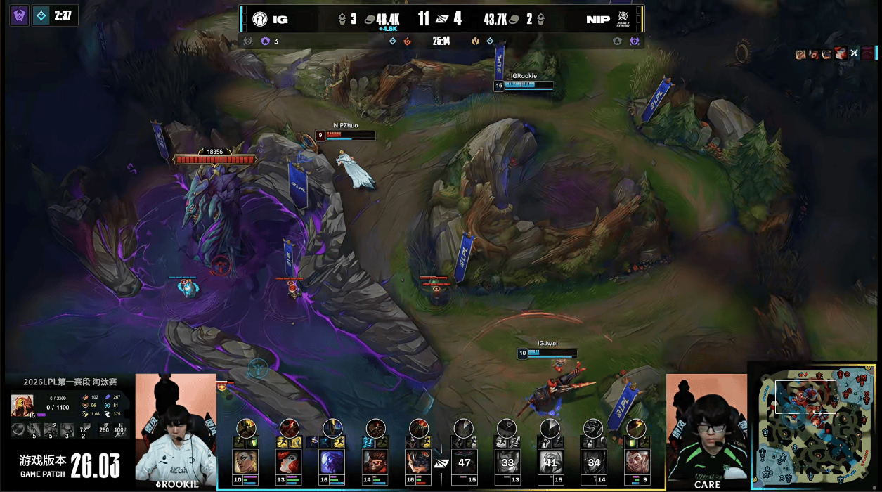 LPL:Rookie大招绕后,IG下路组合打出完美大招配合完成0换4