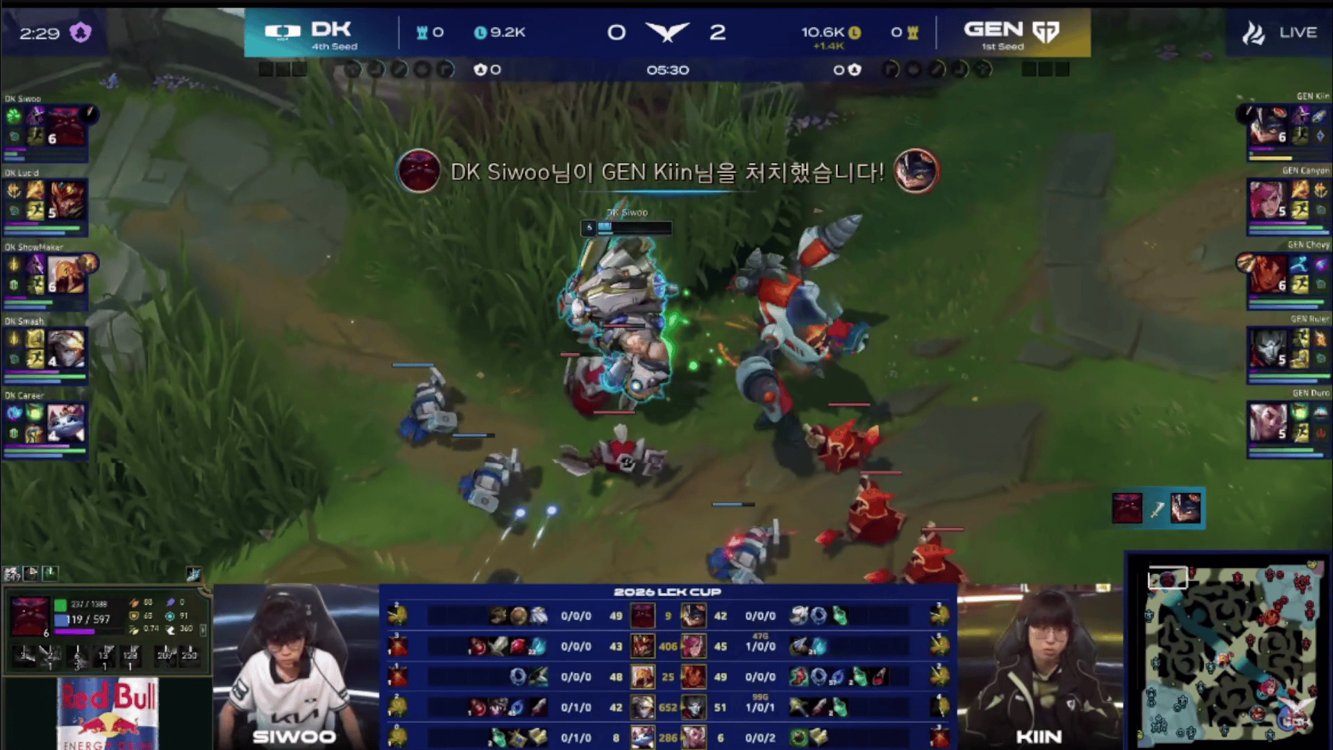 LCK:Siwoo奥恩开场5分钟成功单杀Kiin兰博
