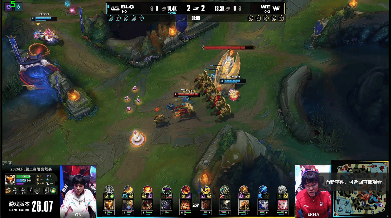 BLG上野果断开团,WE团战一碰就碎BLG打出0换5并拿下大龙