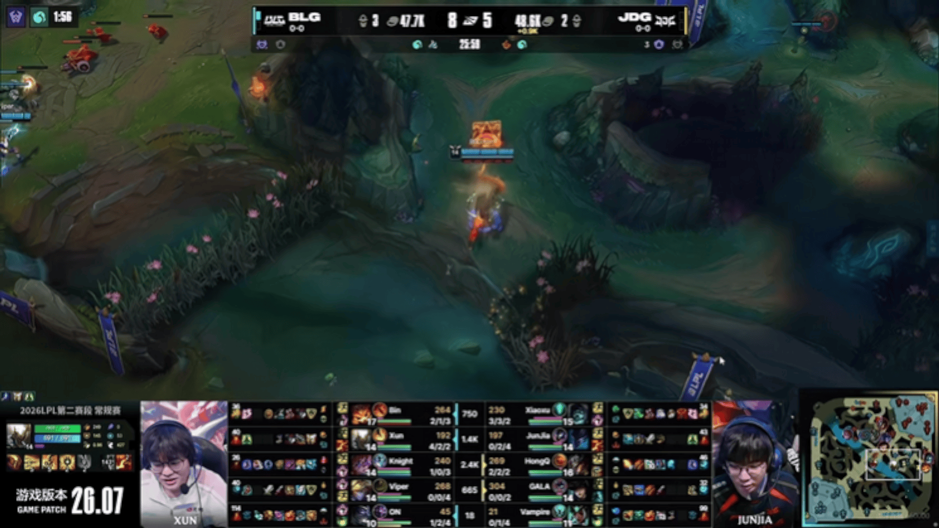 Bin狼母果断TP支援正面,BLG打出0换1并拿下小龙,Cube拿下上一塔