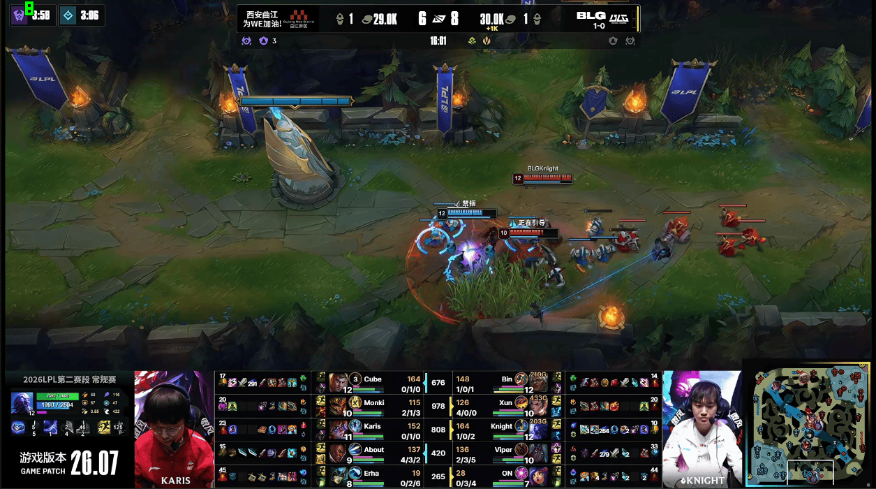 BLG再次三包二强行越塔,About寒冰阵亡但换掉两人
