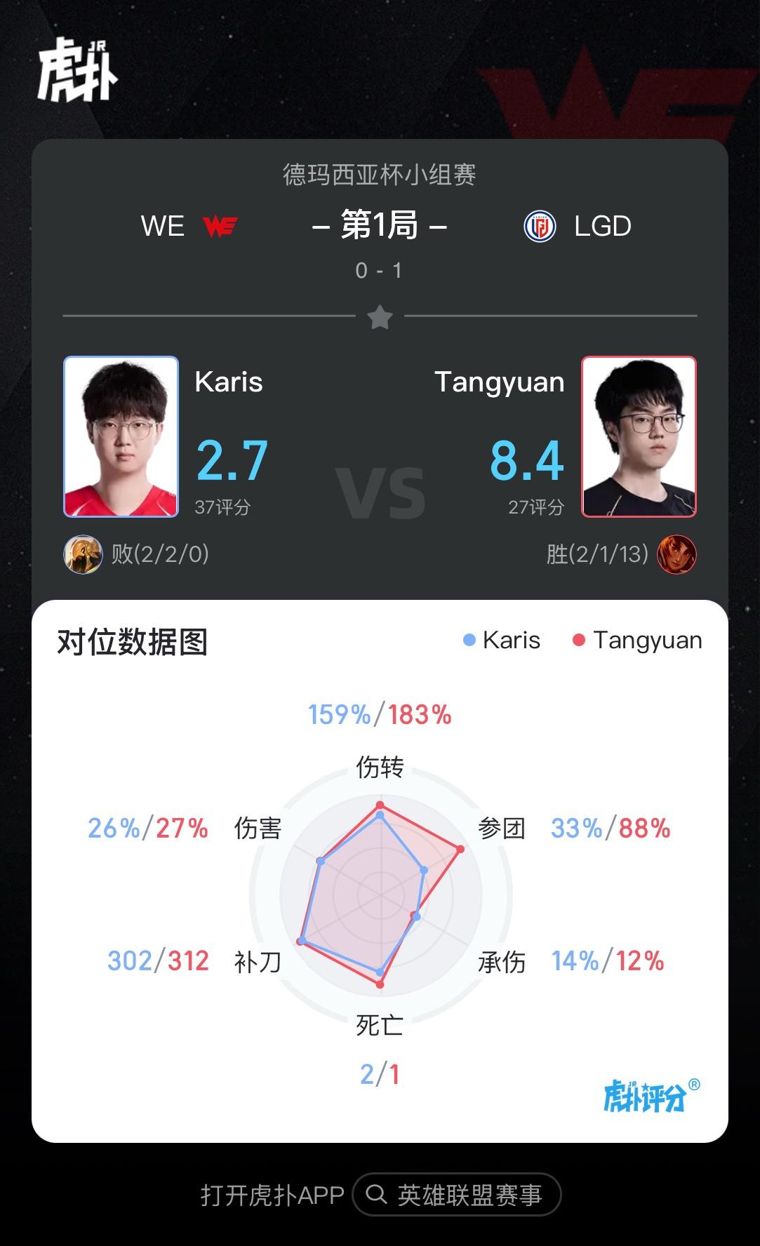Tangyuan岩雀打出2/1/13战绩,拿下LGD对阵WE第一局MVP