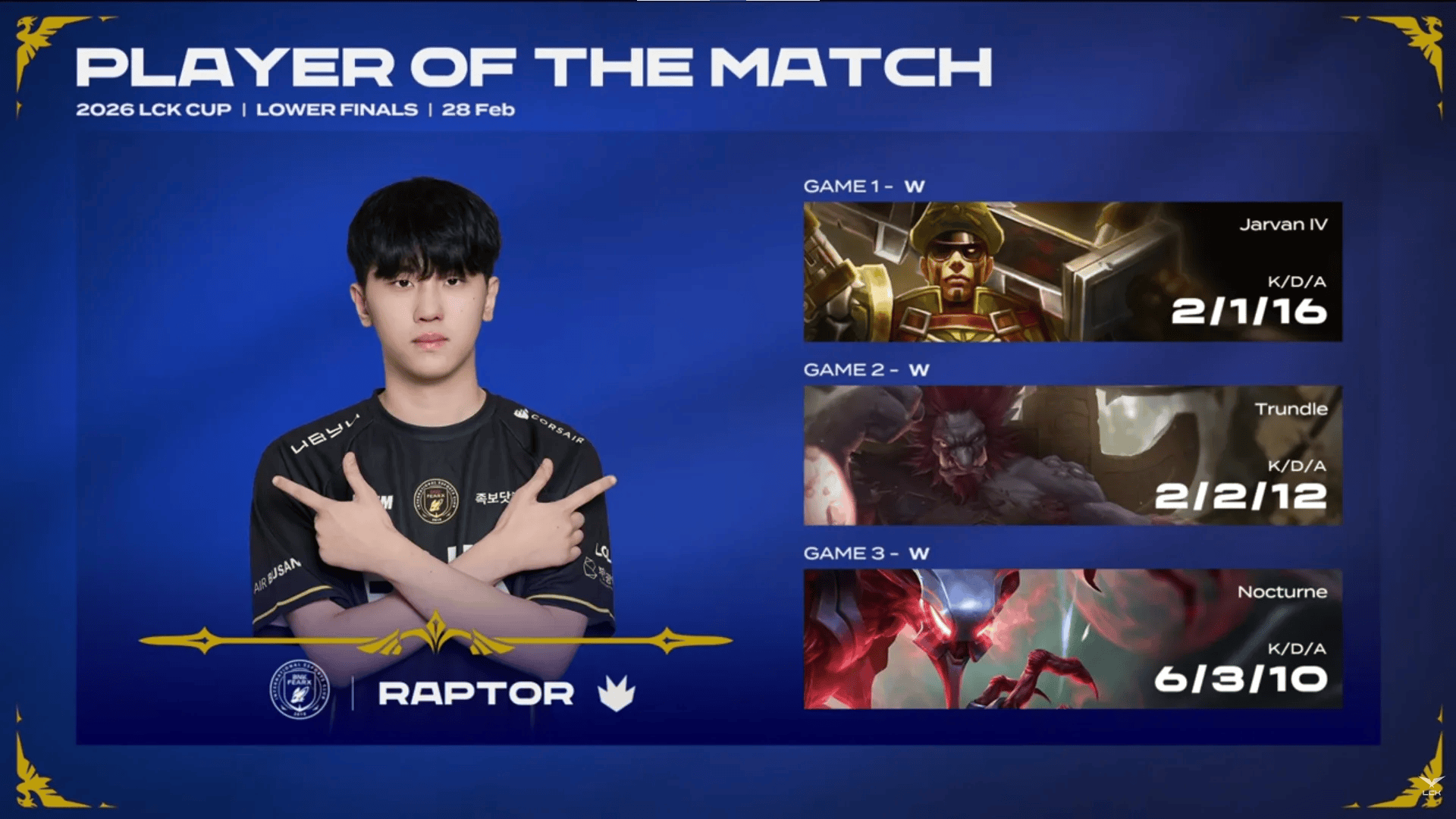 Raptor三局合砍10/6/38的战绩,拿下BFX对阵DK系列赛MVP
