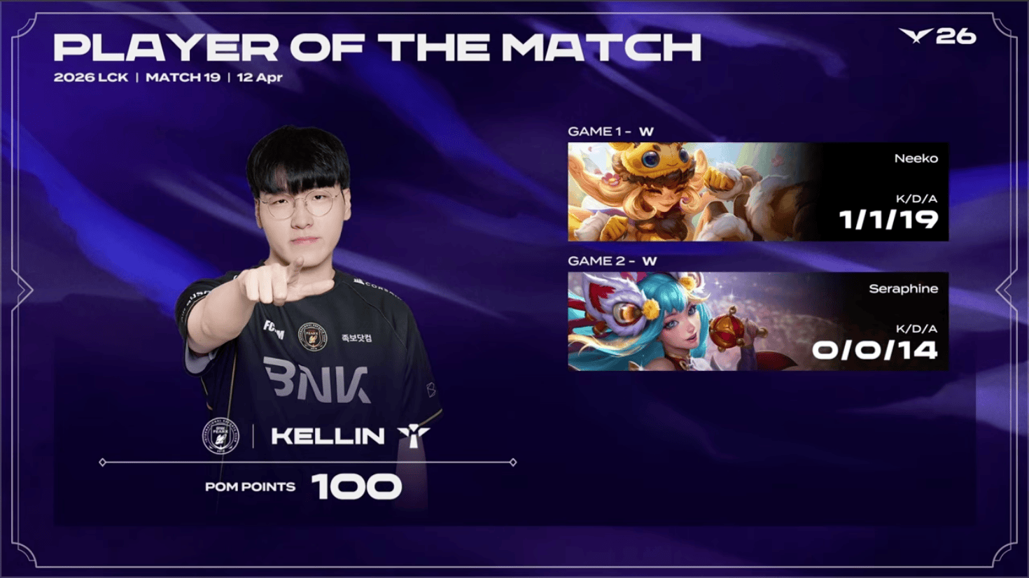 Kellin整个系列赛发挥出色,斩获BFX对阵DNS系列赛POM