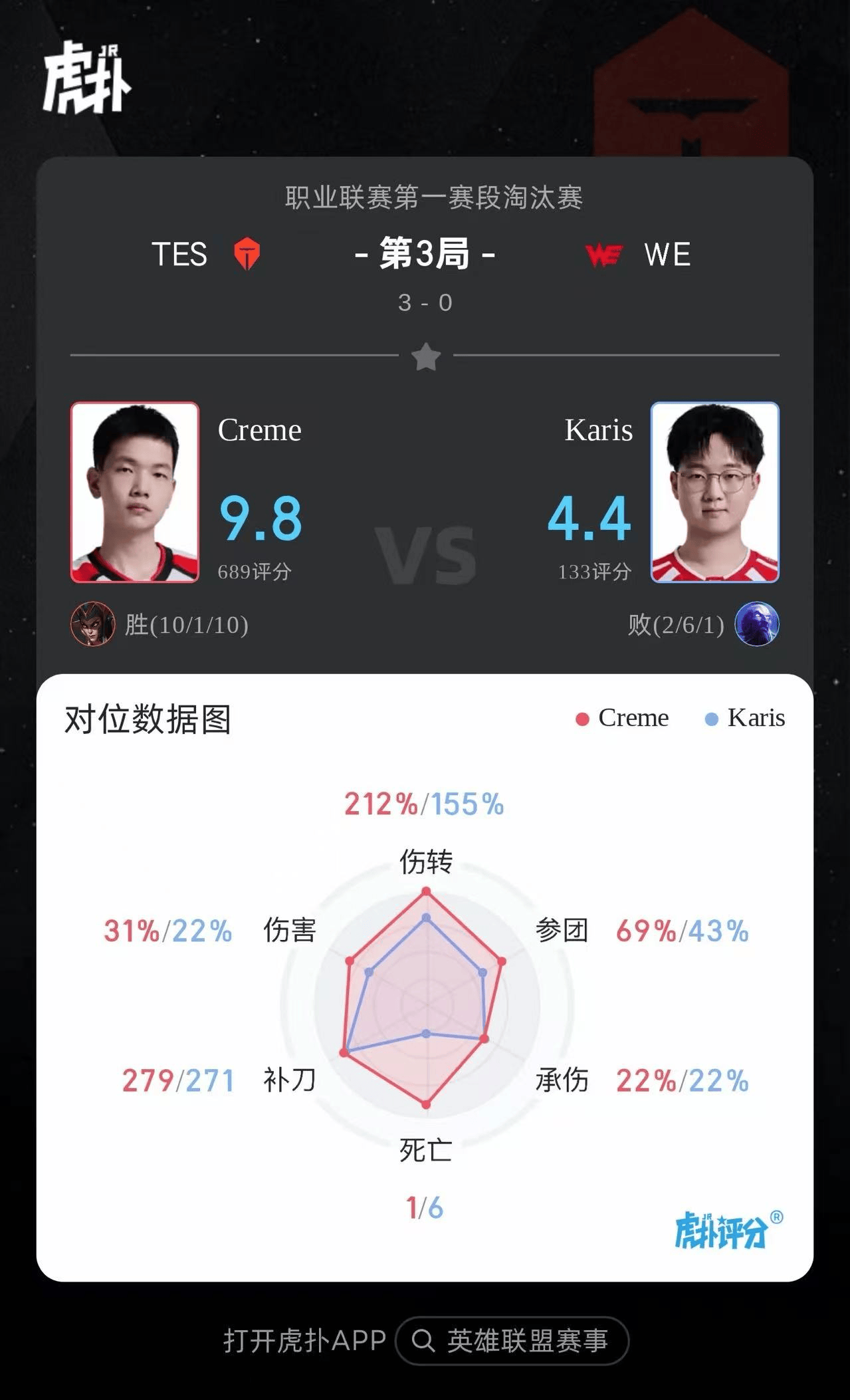 TES 3-0 WE,本场选手表现你打几分?