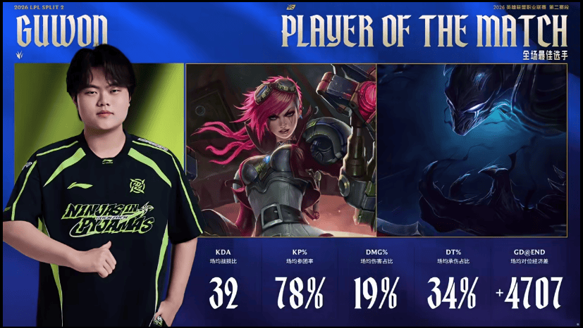 NIP打野Guwon整个系列赛发挥出色,斩获NIP对阵WE系列赛POM