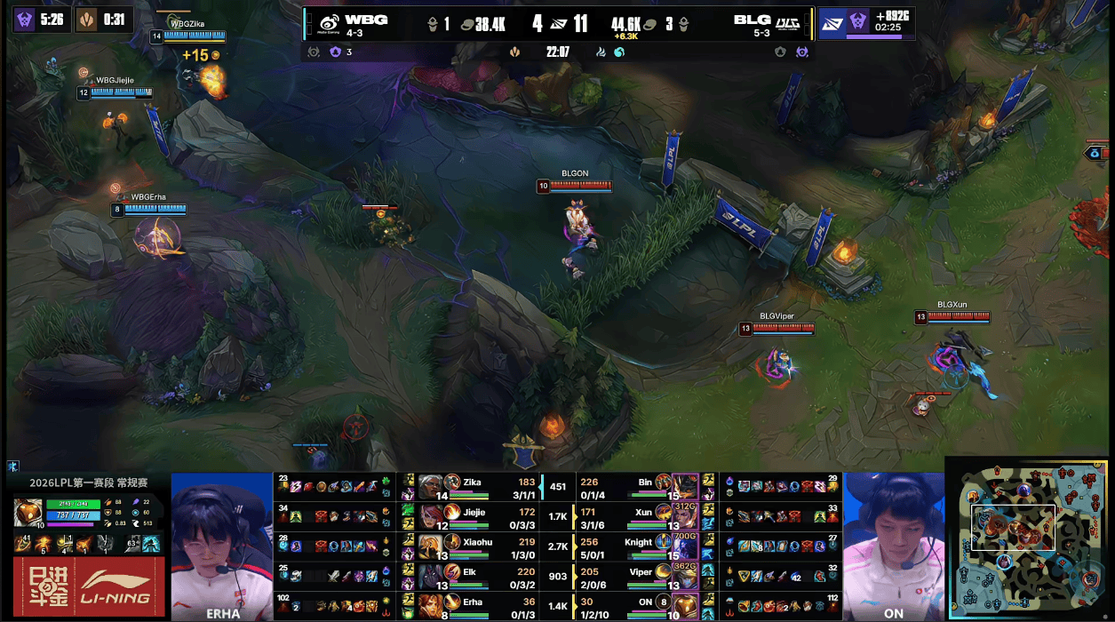 BLG化解WBG第一波攻势,随后果断反击完成1换5