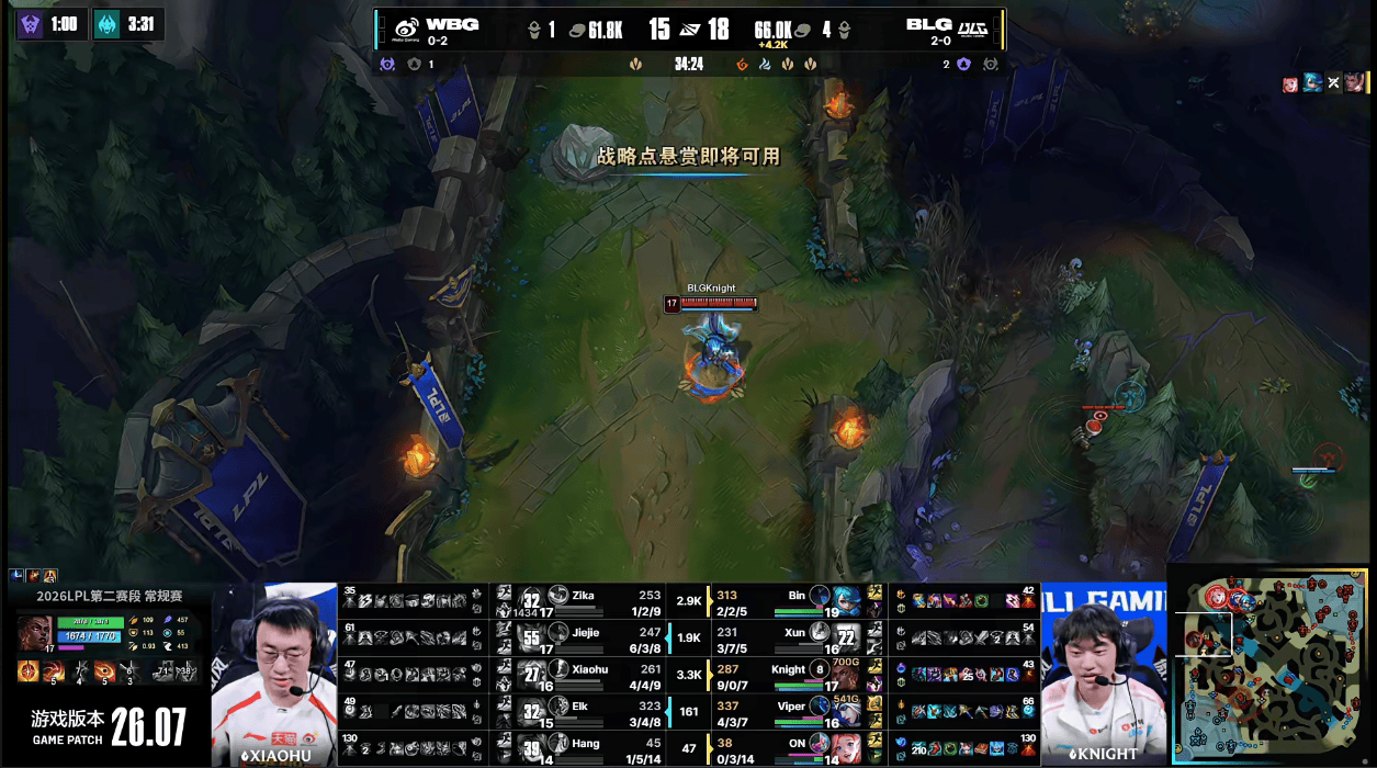 Knight火箭腰带后撤步再次躲掉Xiaohu大招,BLG团战完全碾压
