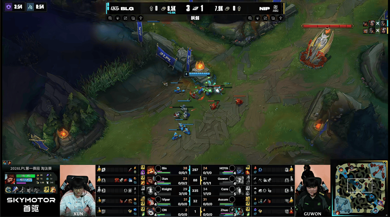 BLG团战站位更优,Assum率先被秒BLG完成2换4团战