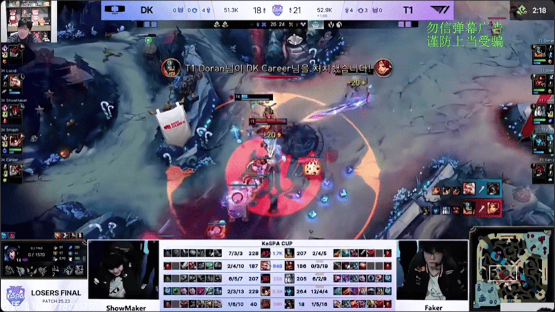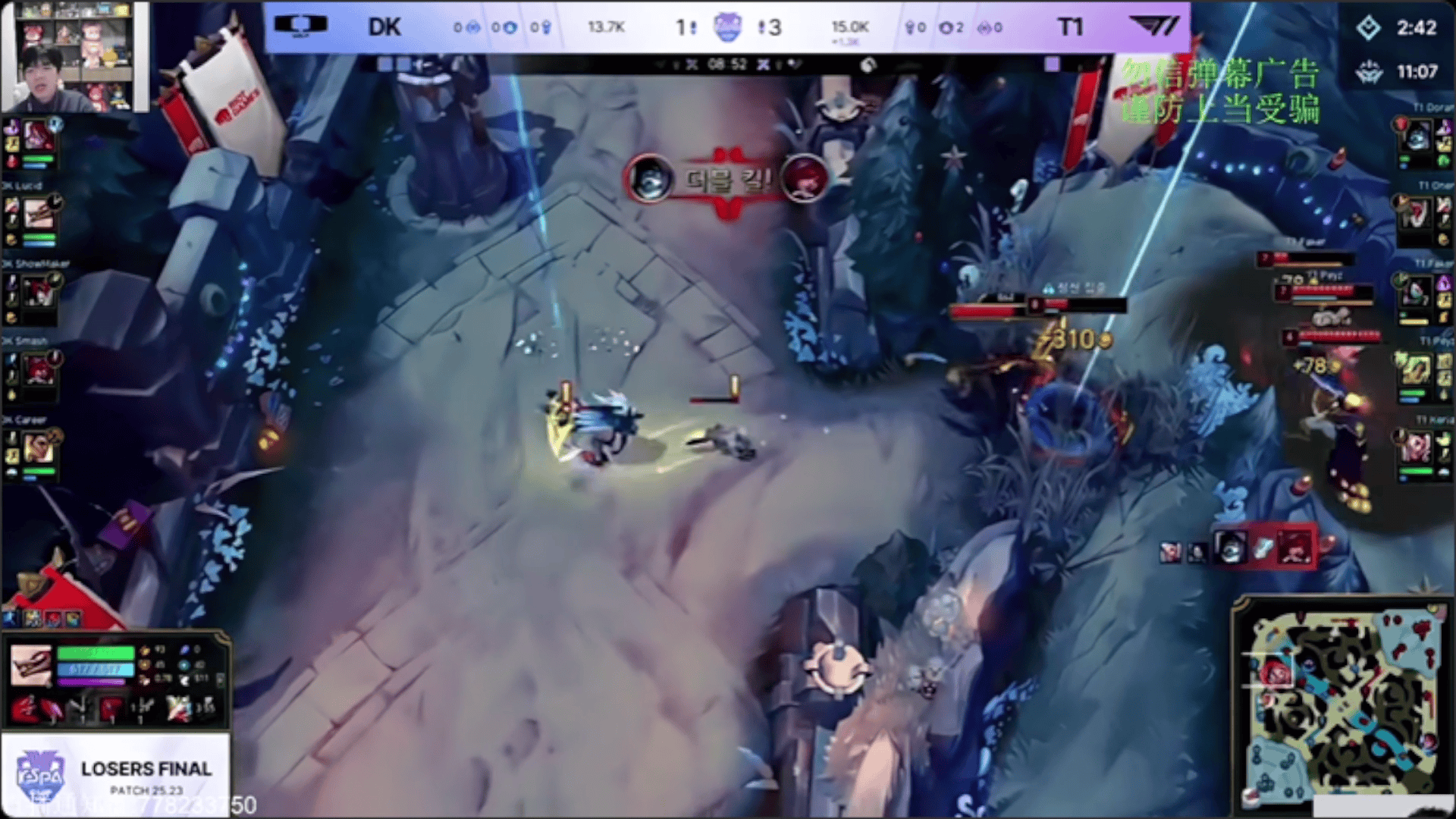 Doran掘墓爆砍双杀,T1巢虫团1换3大胜DK