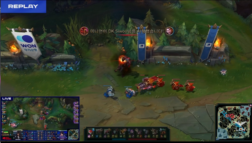 LCK:Siwoo杰斯打断凯南传送后被一套打残,随后收兵时被小兵击杀