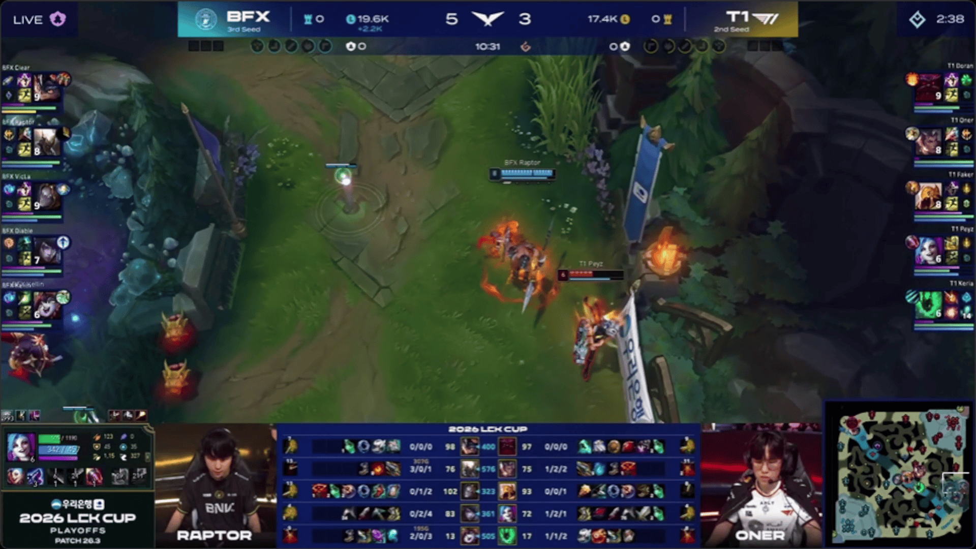 LCK:Peyz金克丝一分钟被抓死两次,Faker沙皇抓下双杀