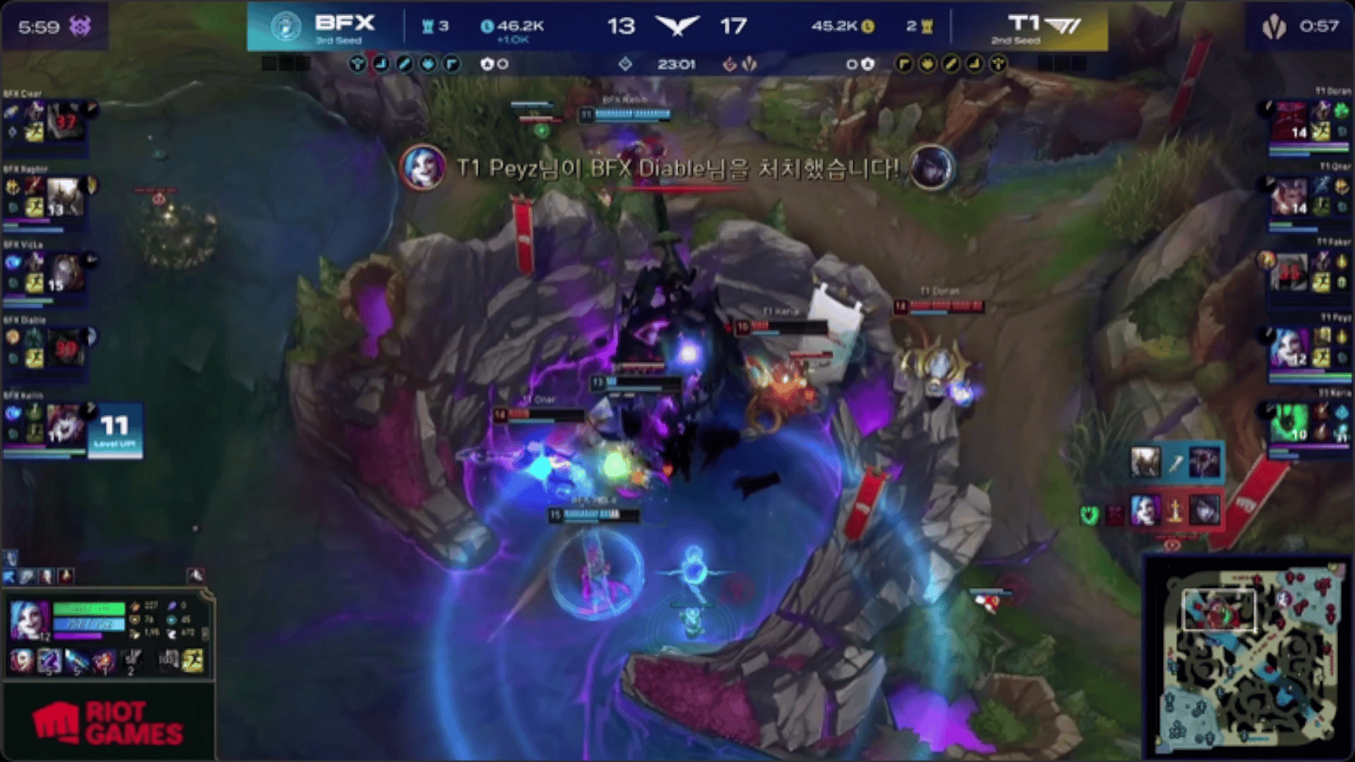 LCK:Diable厄斐琉斯残血反杀Peyz,BFX野区1换4再拿大龙