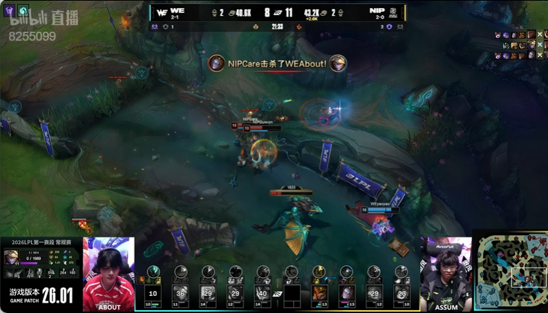 WE双人组抓住对方辅助游走的空挡上前击杀Assum芸阿娜