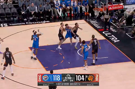 差距明显!半场战罢雷霆利用失误得分为17,而太阳仅仅为4分