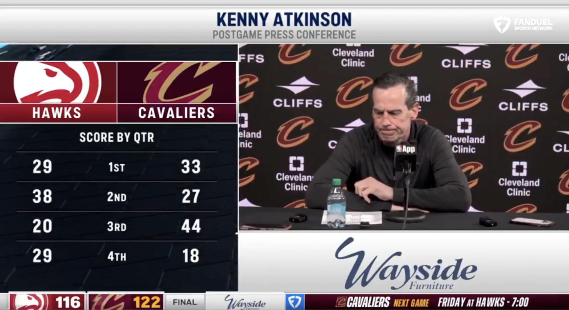 加兰:努力赢下后面两场,回去看录像纠正今晚的错误