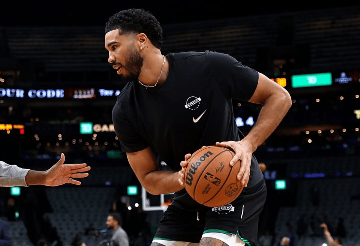 塔图姆穿着Tatum4迎来伤愈复出首秀,鞋身手写两儿子名字