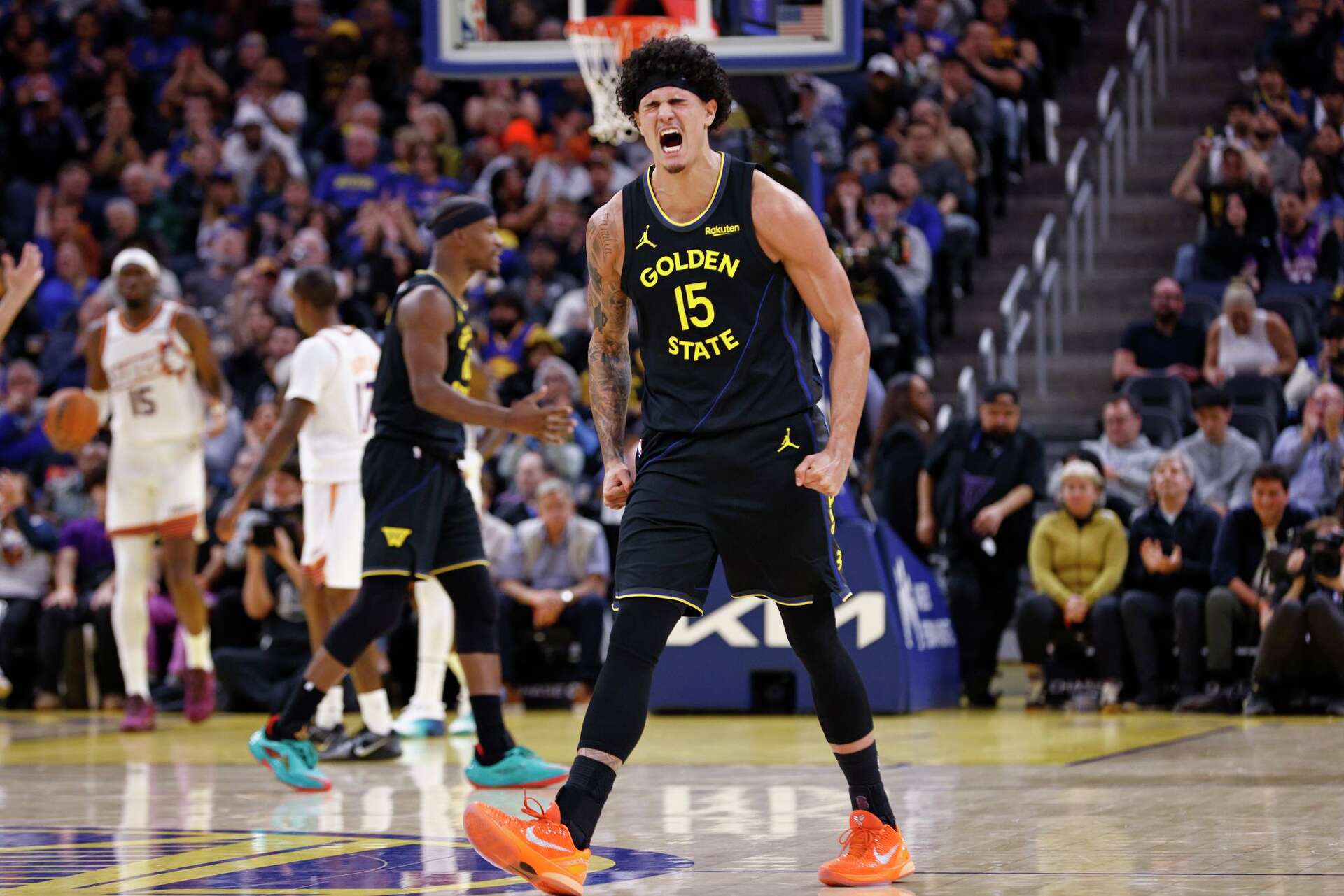 伊森接申京助攻空位三分投进,火箭还了一波9-0追到6分分差