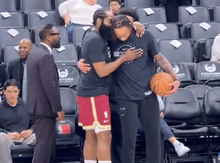 虎扑 16回复好兄弟!船记晒画面:哈登和德罗赞赛前拥抱示意并小声低语