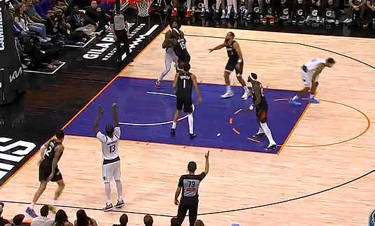 小凯文-波特三分压哨命中,雄鹿首节以22-27落后魔术