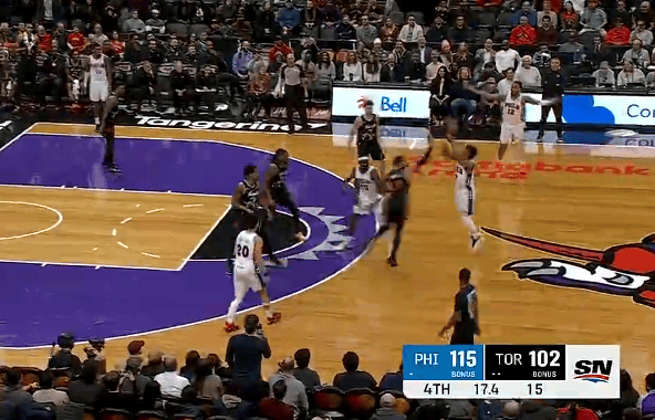 波杰姆斯基全场出战22分钟,10投6中得到15分4篮板1助攻2断