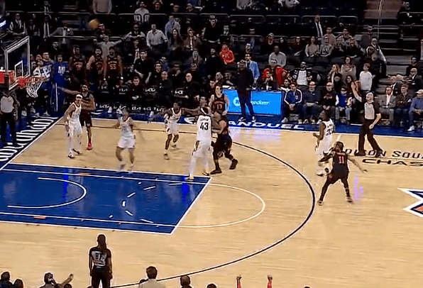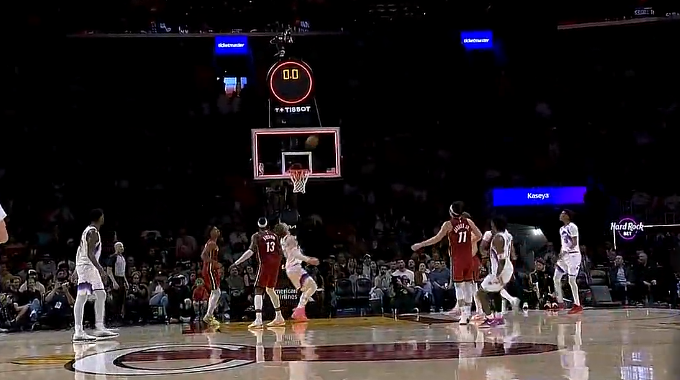 华莱士抢前场篮板助攻杰威打进,回放显示华莱士疑似先出界
