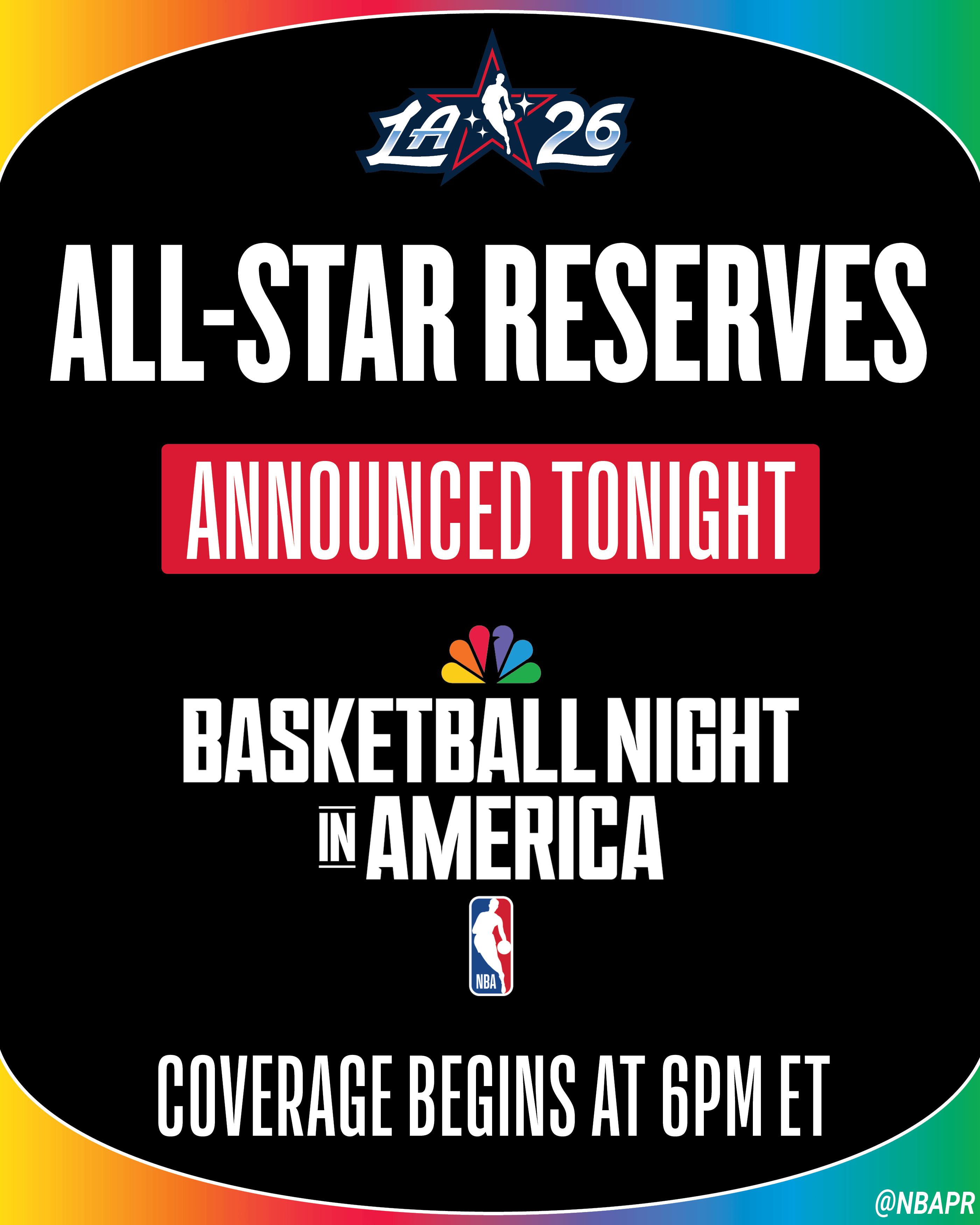 NBA官方:全明星东、西部替补阵容将在早上7点正式公布