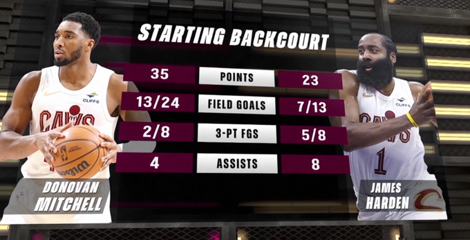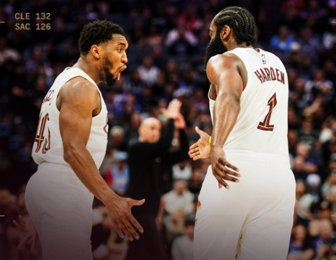 登米组合?骑士末节总共得到39分,哈登米切尔合砍32分