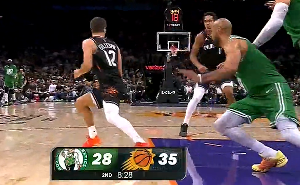 以赛亚-乔投进全队第14记三分,巴特尔垫脚被判恶意犯规
