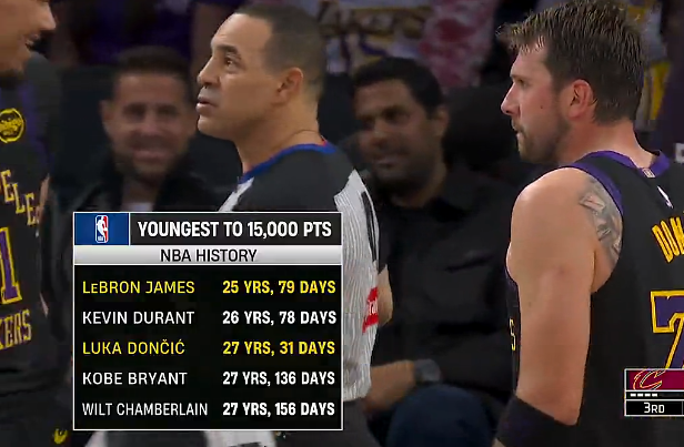 东契奇成为历史第三年轻拿到15000分,前二是詹姆斯和杜兰特