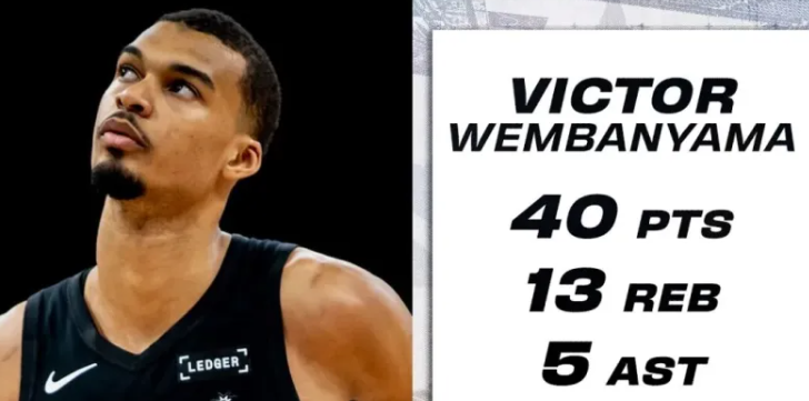 虎扑StatMuse:文班25分钟狂砍40分13板,且已具备赛季评奖资格