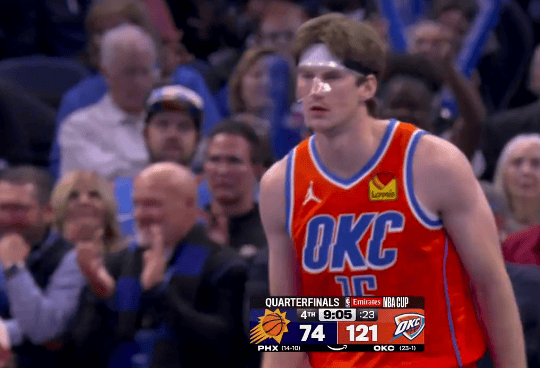 卡尔森、吉昂末节上场各自连拿5分,雷霆已经领先太阳47分