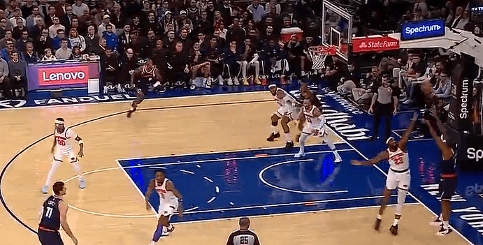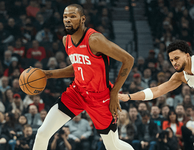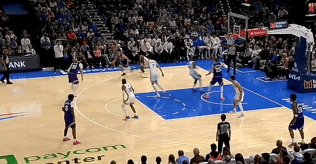 杜兰特造成卡马拉犯规跳投打成2+1,卡马拉摇手示意挑战