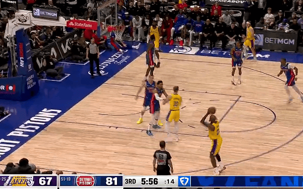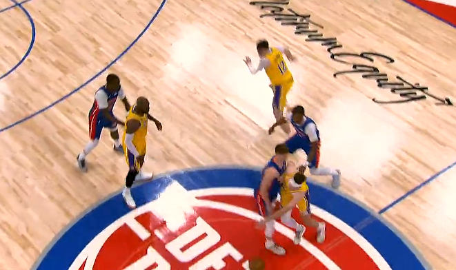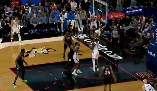 里夫斯中线被两人贴防未吹犯规,裁判吹罚里夫斯走步违例