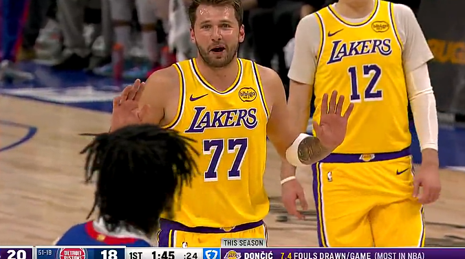 东契奇首节已经砍下15分,本赛季场均造7.4次犯规联盟第一