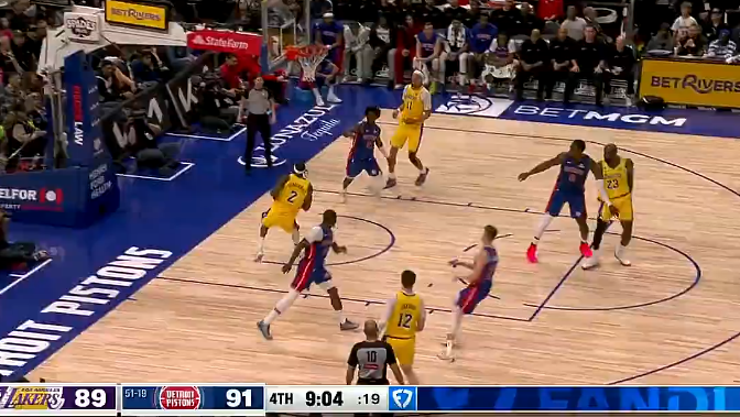 詹姆斯不看人击地妙传送出第10次助攻,拿到7分7篮板10助攻