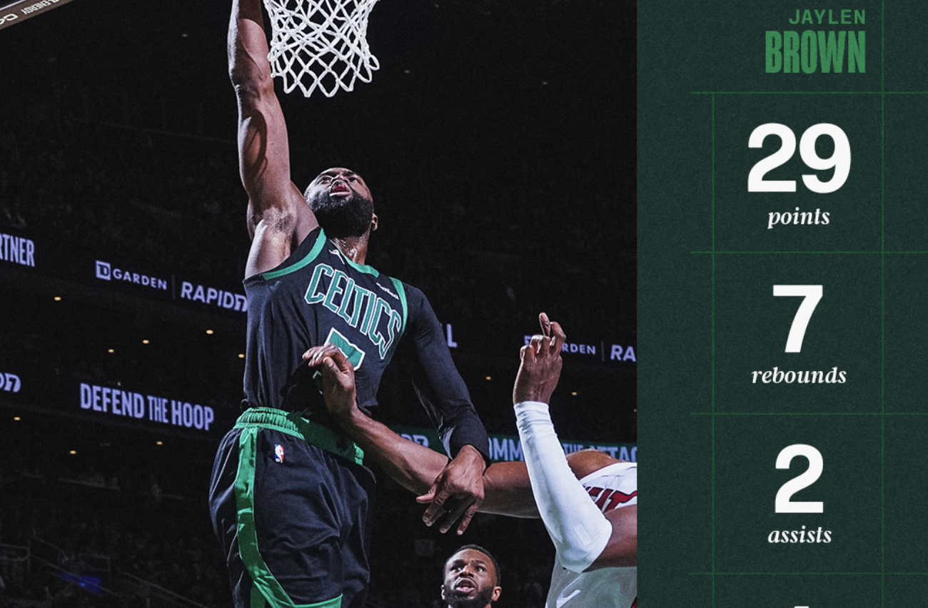 29+7!凯尔特人官方:带队逆转,杰伦-布朗当选为本场最佳