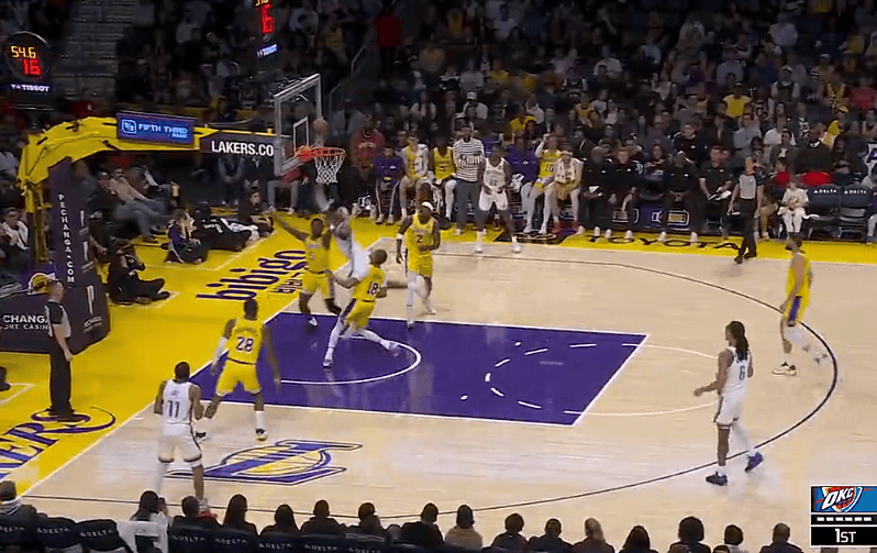 东詹里缺阵湖人首节仅落后雷霆7分,此前全出战落后雷霆23分